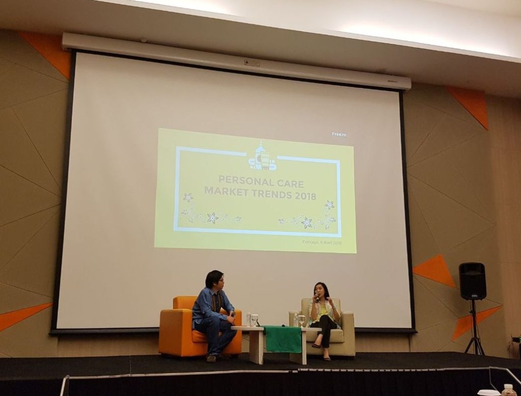 Ibu Meifi Ekayanti dari PT Lautan Luas, Tbk. (kanan) menyampaikan materi dalam CONCEPT 2018 dengan moderator Bpk. Tony Handoko (kiri)