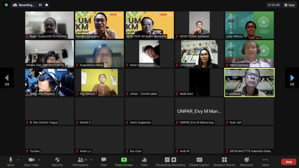Pada Rabu, 15 Desember 2021, Prof. Dr. Ir. Judy Retti B. Witono, guru besar dan salah seorang dosen TK UNPAR, menjadi narasumber dalam Focus Group Discussion terkait permasalahan nyata UMKM online di Indonesia. Acara ini yang diprakarsai oleh UMKMshop, komunitas pembelajaran untuk UMKM, dan tim pengabdian masyarakaat TK UNPAR. Konten utama acara ini adalah kegiatan diskusi yang dihadiri oleh berbagai praktisi bidang UMKM di Jawa Barat, pejabat pemerintah daerah yang berhubungan langsung dengan masalah UMKM, dan akademisi. Kegiatan diskusi ini terfokus pada pembahasan mengenai tantangan dan solusi dalam UMKM online.