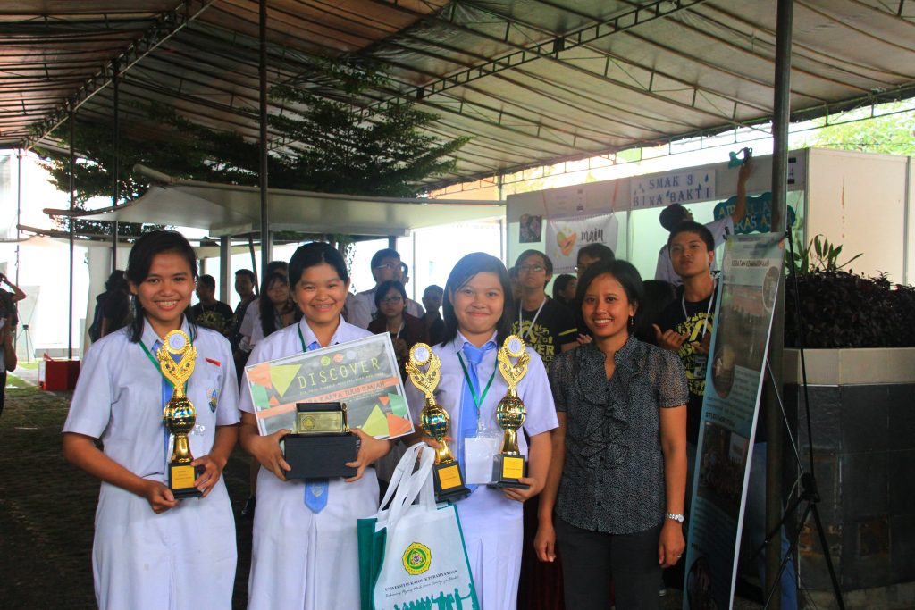 Juara pertama Lomba Karya Ilmiah ini diraih oleh Silvani Anthonia, Ellen Valensia, dan Stevany Jesieka dari SMA Santo Paulus Pontianak yang membawakan makalah berjudul “Ale-Ale Pengikat Besi: Pemanfaatan Limbah Cangkang Ale-Ale Sebagai Media Filtrasi untuk Mengurangi Kadar Besi dalam Air Gambut”. Dalam presentasinya, Silvani dan tim menjelaskan penelitian yang mereka lakukan berangkat dari kesadaran akan banyaknya lahan rawa gambut di Indonesia, di mana air gambut sering dimanfaatkan untuk kehidupan sehari-hari warga sekitar. Padahal air gambut secara visual tidak menarik (berwarna kecoklatan), dan jika dipakai berdampak negatif terhadap kesehatan masyarakat. Dengan menggunakan penyaring sederhana yang mereka buat, Silvani dan tim berhasil menurunkan kadar besi di air gambut, sehingga air menjadi lebih jernih.