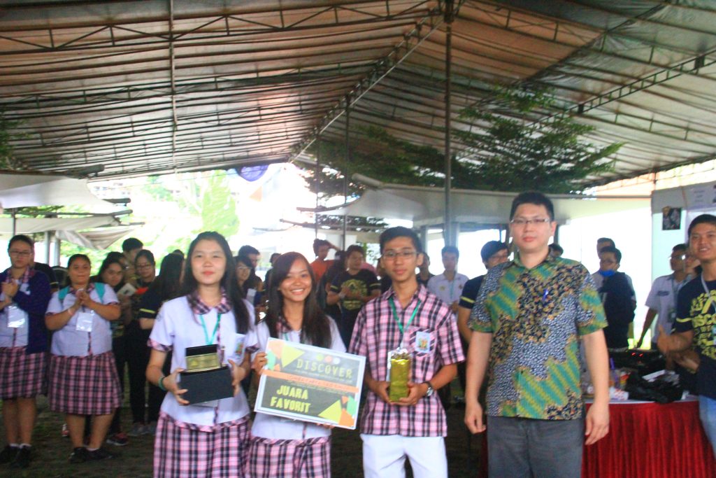 Sementara itu, juara favorit hasil voting pengunjung Pekan Ilmiah diraih oleh Hana Yemima, Vincencia Lourine, dan Reihan Krisnawan dari SMA Trinitas Bandung, dengan makalah “Kolaborasi Limbah Plastik dan Limbah Kubis menjadi Bahan Bakar Premium”.