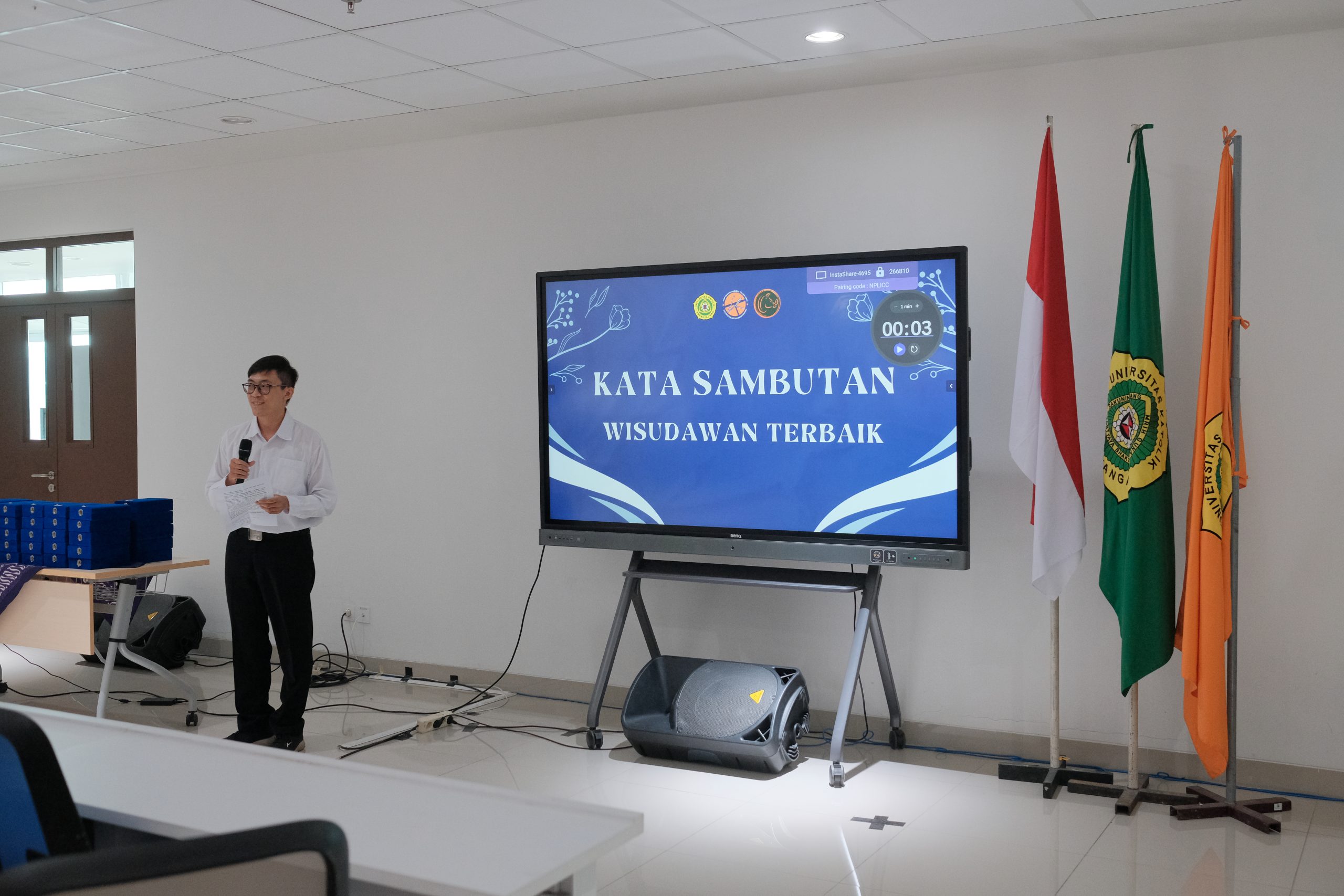 Dalam suasana penuh semangat, kemeriahan tak berhenti di situ. Wisudawan terbaik, Febianus Ferdo Setyadi, menyampaikan kata sambutan yang menginspirasi sambil mengingatkan akan perjalanan panjang yang telah mereka tempuh. Sementara itu, Falencia Suryati, salah satu wisudawati, juga mengucapkan terima kasih kepada para dosen yang telah dengan sabar membimbing mereka sepanjang perjalanan studi di Teknik Kimia UNPAR. Dalam kesempatan ini, para wisudawan/wati juga tak lupa untuk mengucap syukur atas kesempatan yang diberikan untuk belajar di Teknik Kimia UNPAR. Mereka mengakui bahwa hari perpisahan bukanlah akhir dari segalanya, melainkan lembaran baru dalam kehidupan mereka. Keyakinan dalam fondasi kokoh yang mereka bangun di sini akan menjadi landasan untuk menghadapi berbagai tantangan di masa depan semakin kuat. Semangat dan ilmu yang mereka peroleh dari UNPAR akan membimbing mereka melangkah maju, berkontribusi dalam kemajuan dunia teknik kimia, dan meninggalkan jejak keberhasilan di bidang ini.
